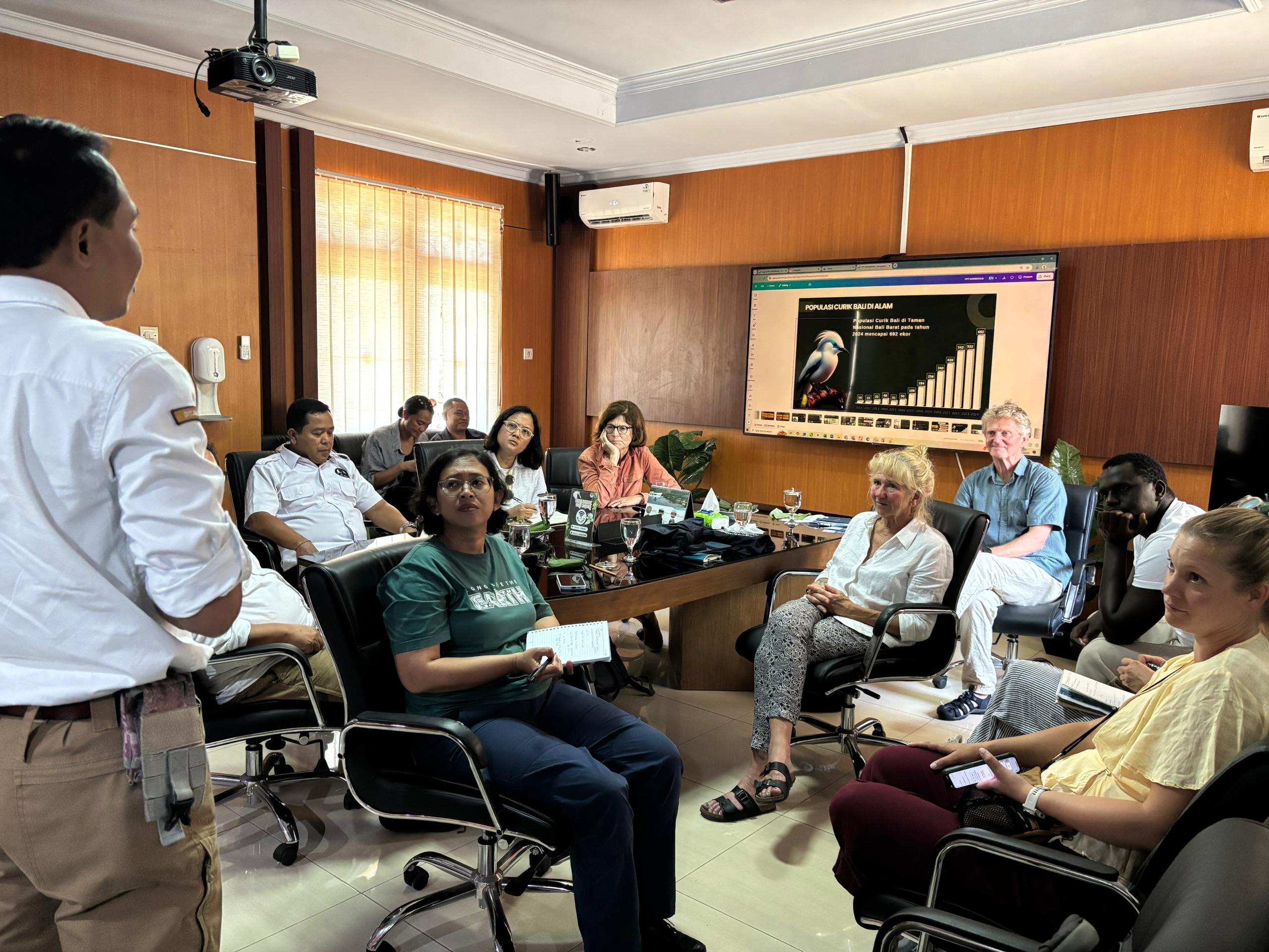 Meeting with the West Bali National Park team in the northwest corner of Bali. We heard about forest and coastal habitat conservation, integration of Indigenous knowledge in conservation, and about the dramatic recovery of the Bali starling, which we were then lucky enough to see for ourselves!